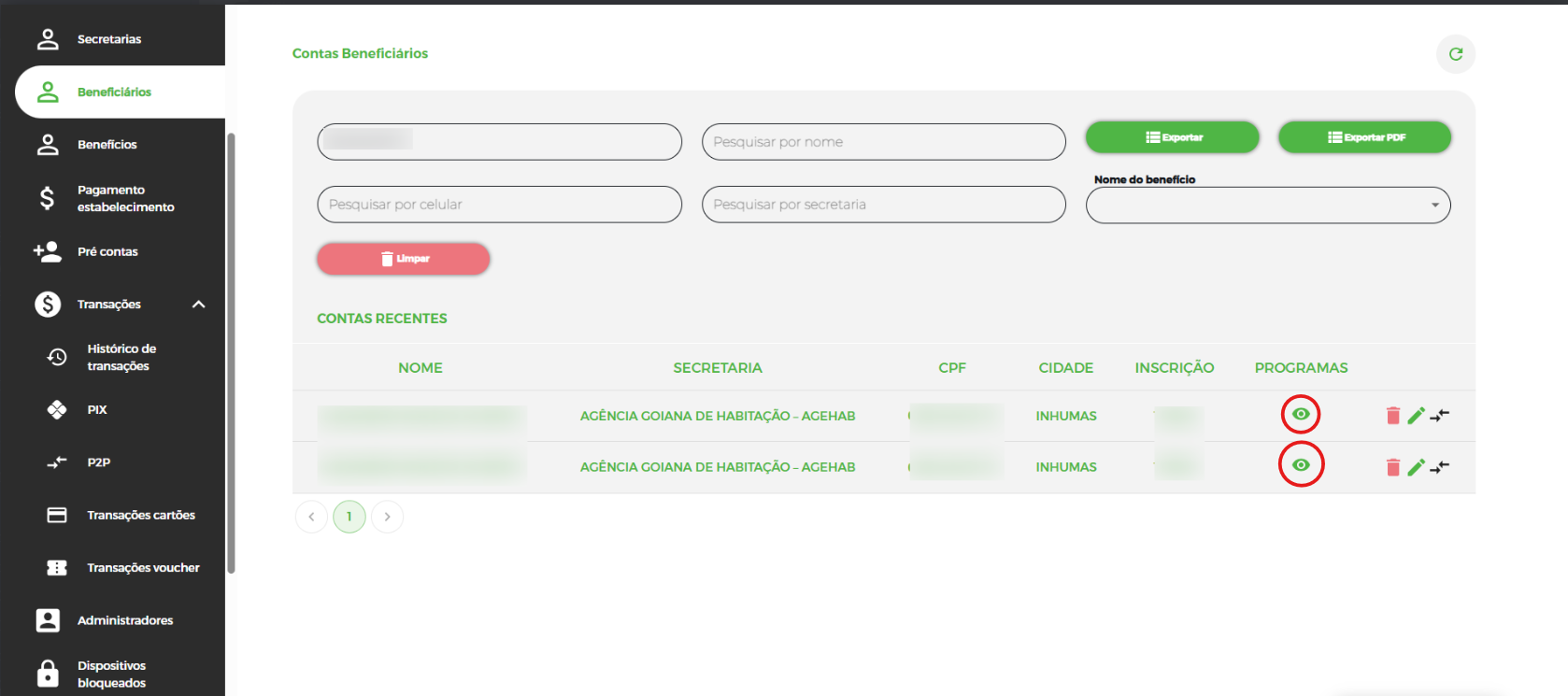 Acesse o Dashboard e vá até a aba "Beneficiários".