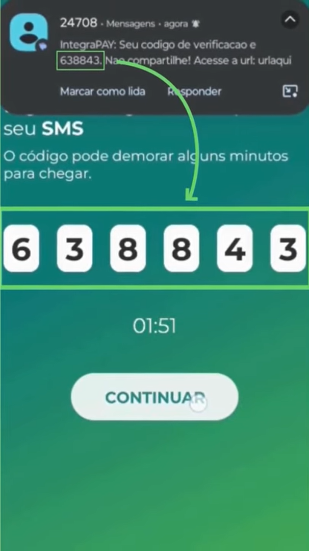 - Agora é só esperar receber o código e digitar ele assim que receber: