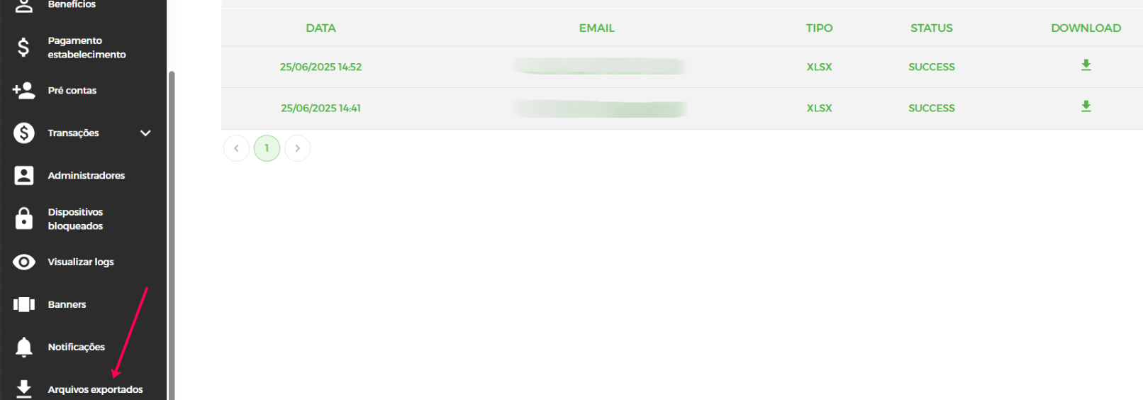 Após exportar, vá até a opção “Arquivos Exportados” no sistema (geralmente disponível no menu ou na parte superior da tela).