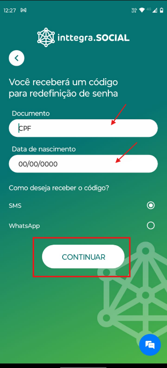 Assim que você clicar em continuar no passo anterior, um código de segurança será enviado para o seu SMS ou WhatsApp (conforme você escolheu). Agora, basta seguir estes passos finais: