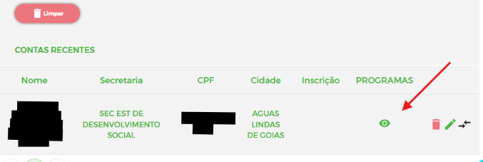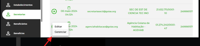 Localize a secretaria responsável pelo programa do beneficiário e clique em "Gerenciar".