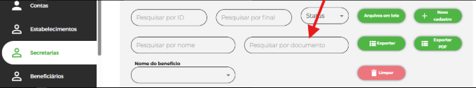 Utilize o campo "Pesquisar por Documento" e insira novamente o CPF do beneficiário.